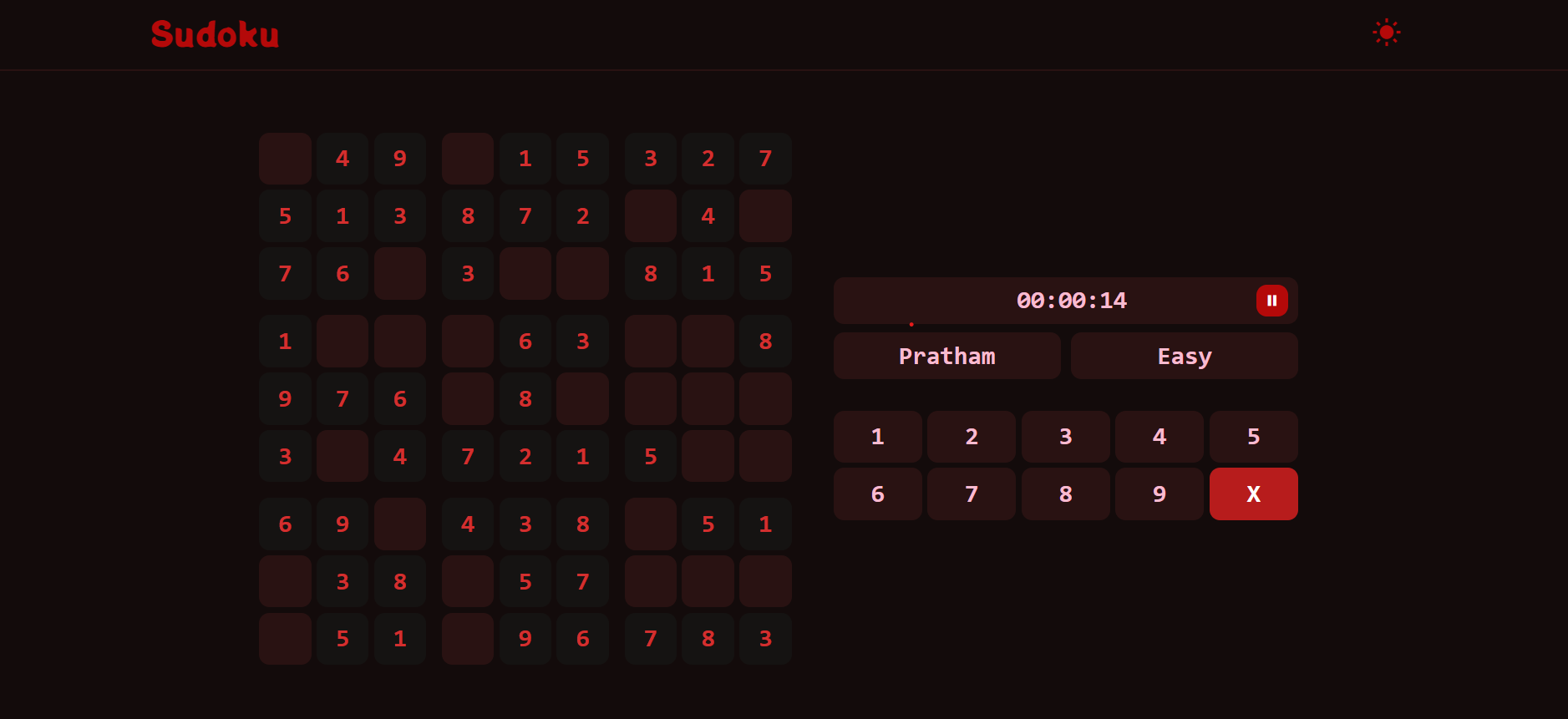 Developed a dynamic Sudoku game using HTML, CSS, and JavaScript, featuring a light/dark mode toggle for improved user experience. Added a timer to track gameplay time and challenge users to beat previous records. Integrated a difficulty selection option, allowing users to customize the level of chal...Read More